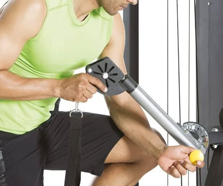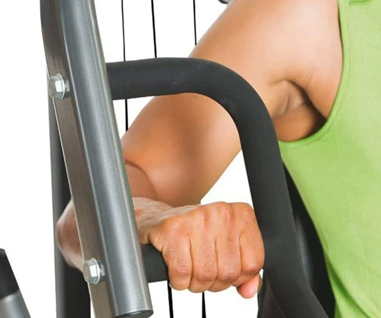 Free-motion arms easily adjust for a variety of cable exercises.