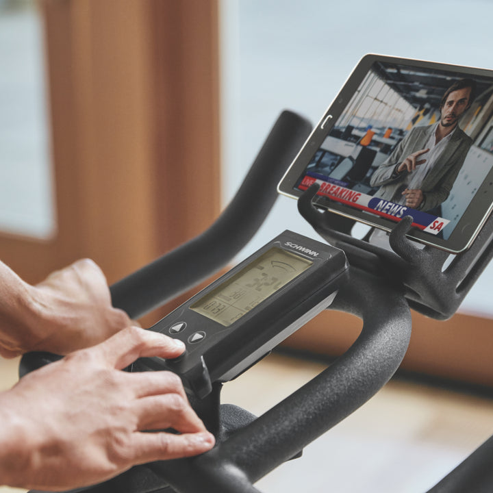The Schwinn ® 700IC offers a low-impact indoor cycling cardio workout specifically designed for ambitious cyclists. When the weather is bad or your schedule is hectic, you can simply move your workout indoors and hop on the 700IC for a low-impact power workout that will make you feel like you're riding through the mountains. With its large LCD console, wireless heart rate monitoring, 18.1 kg / 40 lb flywheel, and continuously adjustable resistance, this bike offers real added value for ambitious cyclists. Improve your health and bring the Schwinn® 700IC into your home.